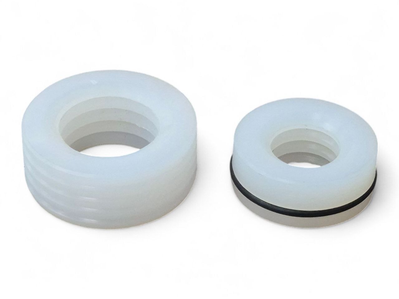 Комплект уплотнений для плунжера насоса высокого давления окрасочного аппарата AktiSpray-2300. Кольцо большого диаметра устанавливается в нижнюю часть блока, кольцо среднего диаметра устанавливается в верхнюю часть блока для уплотнения штока, кольцо самого малого диаметра– в горловину насоса.
